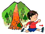 土石流は速度が早いため、流れを背にして逃げたのでは追いつかれてしまいます。土石の流れる方向に対して直角に逃げるようにしましょう。