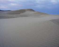 砂丘砂は、石英と呼ばれる鉱物を中心としており、その平均粒径は、0.2~0.3㎜と小さく、かつ、ほぼ均等な粒子の大きさで構成されています。この粒子の大きさは風速が5m/s位になると活発に移動し、地表面がさざ波模様となる風紋を形成しやすい一因となっています。