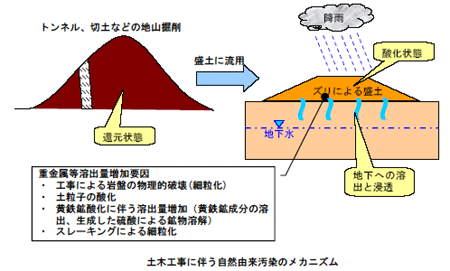 近年、人為的な行為に伴って引き起こされる自然由来の重金属や酸性水等による環境汚染が、クローズアップされつつあります。
