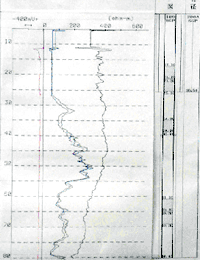 | 密度検層 | 散乱γ線強度 | 地層の密度 | ケーシング内は散乱補正が必要 |