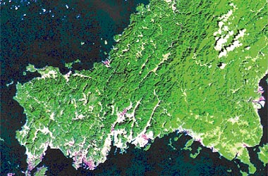 リニアメントの例(山口県のランドサット画像)